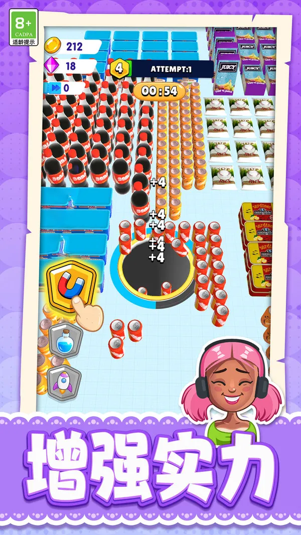 4、黑洞吞噬玩法独特,购买消耗品,操纵黑洞吞食方块,乐趣无穷。