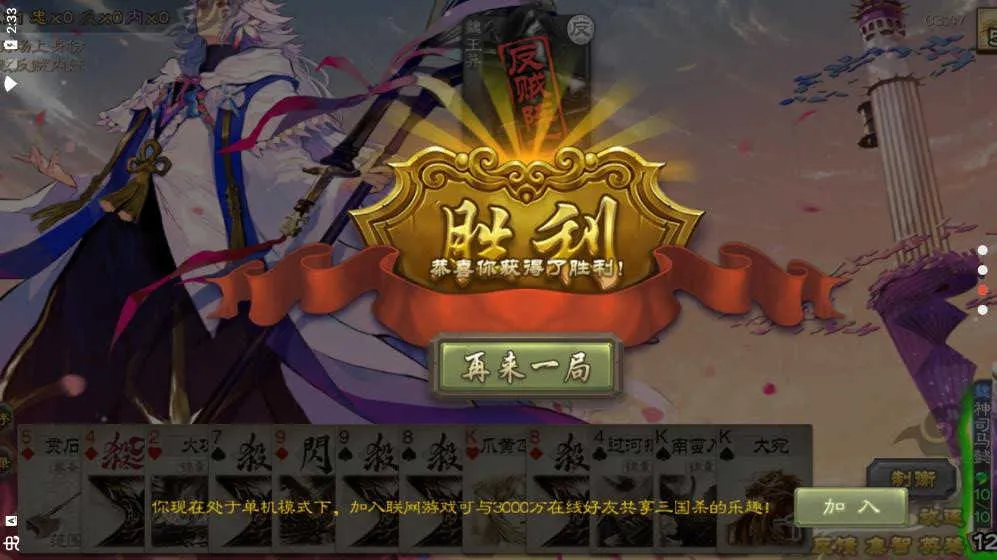 总的来说,三国杀移动版是一款非常优秀的策略卡牌游戏,它成功地在保留核心玩法与创新扩展间找到了平衡,既满足了老玩家的情怀,又吸引了新用户的尝试。如果你喜欢策略卡牌游戏,那么三国杀移动版绝对值得一试。