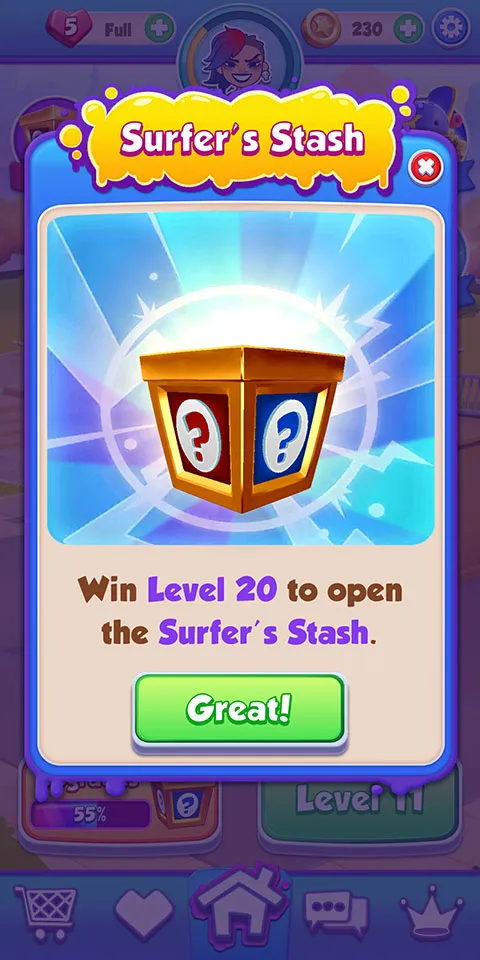 嘿,喜欢玩游戏的朋友们看过来!今天给大家介绍一款超有趣的游戏玩法,就像“地铁跑酷冲浪者之城”这种类型的哦。它有着经典的三消玩法,能让你将相同颜色的方块排列在一起消除,完成消除任务就能获得奖励,还能解锁更高难度关卡。每个关卡都有独特挑战,超考验策略与技巧。你可以点击主界面右下角的Level按钮进入关卡挑战,完成关卡胜利能得蓝色星星奖励,用星星升级主界面场景元素,升级进度达100还能解锁新主题场景。而且获取宝箱的方式多样,升级玩家等级、通过一定数量关卡或者让场景元素升级进度到100都能拿到宝箱,里面有金币道具等各种奖励。游戏特色满满,能和各种角色搭档破解谜题,还能探索建造并装饰滑板天堂,组建团队赢取特别奖励,使用超强道具粉碎关卡,打造自己的故事,随时随地畅玩,即使离线也没问题。快来体验这种独特又好玩的游戏吧!
