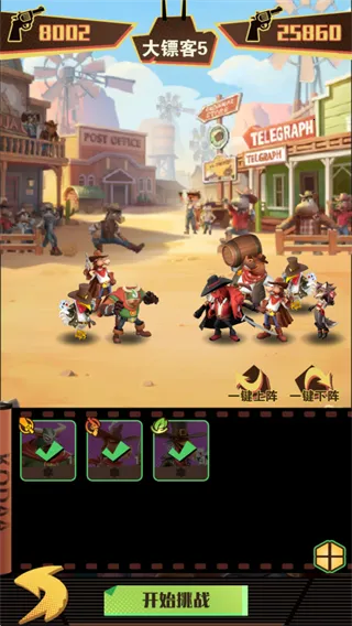 新手攻略来啦:游戏围绕镇长等级展开,完成任务提升等级是主要目标;开局修复建造被损坏的建筑,击败强敌就行;不同角色对建筑生产加成不同,任职对应角色可提升效率;战斗玩法以放置为主,灵活布阵应对强敌;修复酒馆后能招募强力角色,SR角色实力最强哦。快来体验这独特的西部牛仔风情吧!