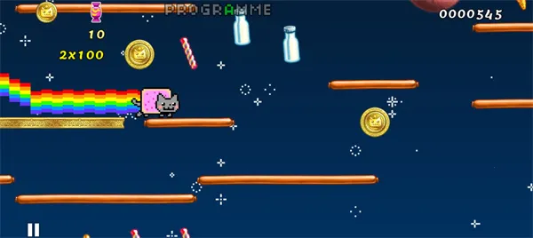 彩虹猫迷失太空(NyanCat:LostInSpace)是一款2D横版像素跑酷手游。玩家操控彩虹猫在太空多场景冒险,躲避机关陷阱,吃掉物品获积分,控制跳跃,收集道具,小心炸弹,结束后依表现拿奖励,还有特色玩法与更新。