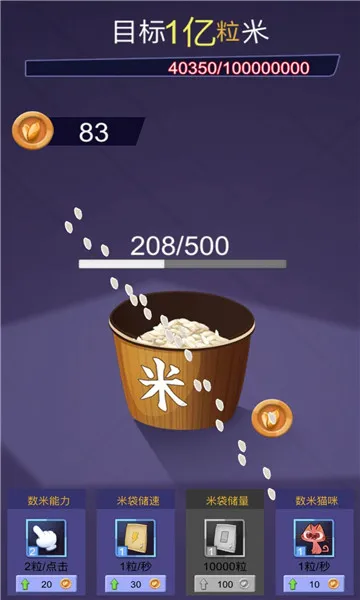 3. 道具助力:随着米粒数量增长会提供多种辅助小工具,如算盘能定期增加米粒,掷骰子可按点数比例获对应数量米粒。道具使用顺手,帮助玩家逐步接近目标。