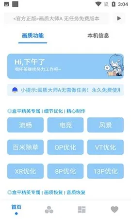 “画质解密a正板”这类软件能帮咱解决游戏画质困扰。它专为手游玩家打造,能优化游戏画面和帧数,让咱无视设备性能,轻松拥有高质量游戏画面,还能稳定设备性能、降低功耗,提升游戏体验感。使用起来也不难,进入软件选中想调整画质的游戏,点击解锁,提前打开应用所需权限,权限开启后进入游戏就能体验优化后的画质啦。它能自定义游戏画质,操作简单,打开软件选好画质方案,开启悬浮窗权限,点击解锁就能用更多画质选项。它还支持大部分热门吃鸡类游戏,能一键解锁和切换多种画质设置,让画面更清晰、动作更流畅,在对局中获得更精准操控和舒适视觉体验。有了它,咱就能轻松提升游戏画质,享受更畅快的游戏啦。