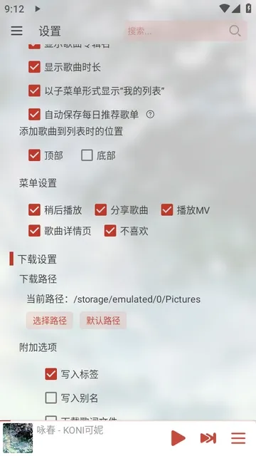 3. 便捷操作设置:在设置界面就能轻松设置主题、音乐来源、列表随机或顺序播放等,还支持趋势榜、怀旧榜等多种榜单,且能将歌词和歌曲名清晰展示,播放无需等待,使用多资源超线程技术。