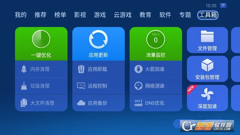 特色也很多,能清理电视系统内存垃圾,让电视更流畅。不断更新应用,不错过任何新软件。还有便利的软件管理功能,能更新、卸载软件。目录浏览分类多,内容丰富。