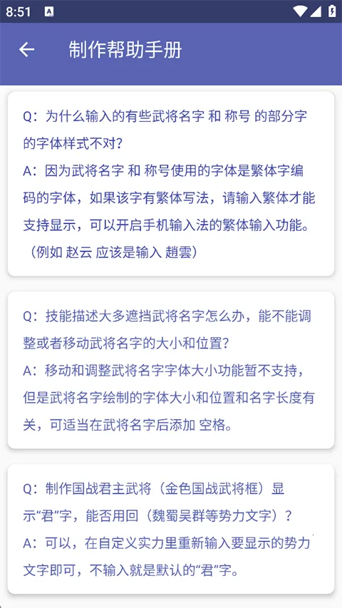 3、贴心细节优化:解决了武将名字字体样式问题,如支持繁体输入;针对技能描述遮挡名字的情况,虽不能移动名字大小位置,但可通过添加空格解决;国战君主武将金色框显示文字也可自定义。