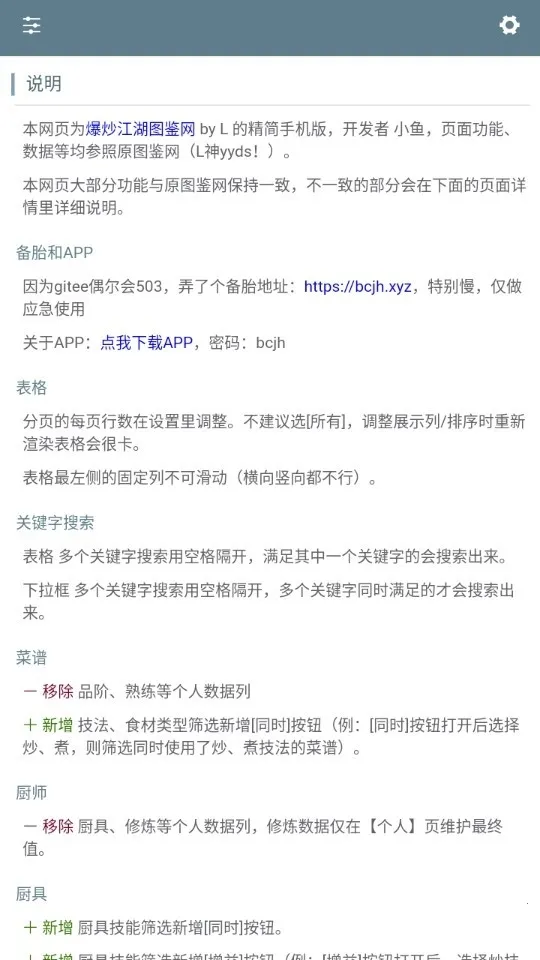 1. 提供菜谱与角色数据查询功能,能让玩家快速了解游戏内容结构,轻松知晓菜谱与角色相关信息。