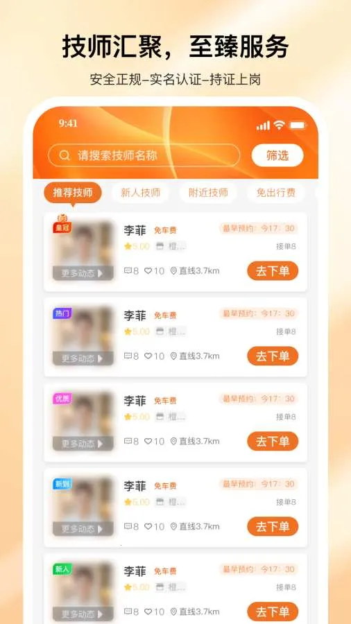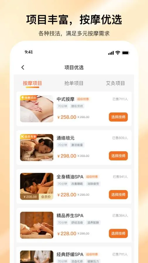 3. 选择多样:海量技师,可按手法、经验、评价筛选,轻松找到合适服务者。服务多元,提供中式推拿、肩颈调理、精油等多种项目,适配久坐、差旅、日常等场景。