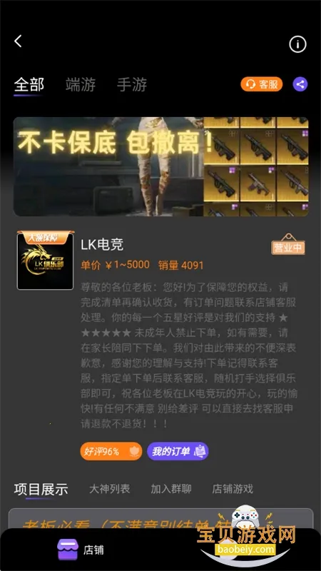 它的便利性更是没得说。界面设计清新,操作简单,支持名片一键分享、技能卡片展示、数据报表自动统计。还能为俱乐部开启专属独立店铺,通过扫码或链接快速引流,让品牌在玩家圈子里迅速传播。想上架商品,在俱乐部管理页面添加各类游戏项目,设置好单价与说明,开启店铺功能就行,简单又方便,能帮你快速开启业务,吸引更多玩家下单。