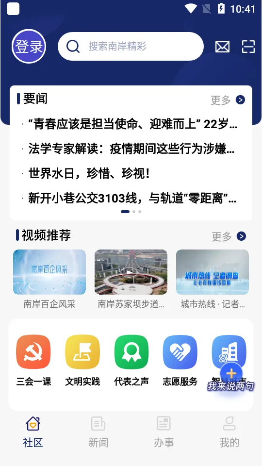 掌新南岸是专为南岸居民设计的便民APP,整合本地新闻、政务及生活服务。支持个性化订阅、一键导航,涵盖多种功能,提供一站式服务,提升居民便利性与参与感,推动社区和谐发展。